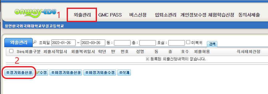 2. ¿ÜÃâ°ü¸® Ç׸ñ ÁÂÃø ÇÏ´Ü Á¤±â¿ÜÃâ½ÅûÀ» Ŭ¸¯