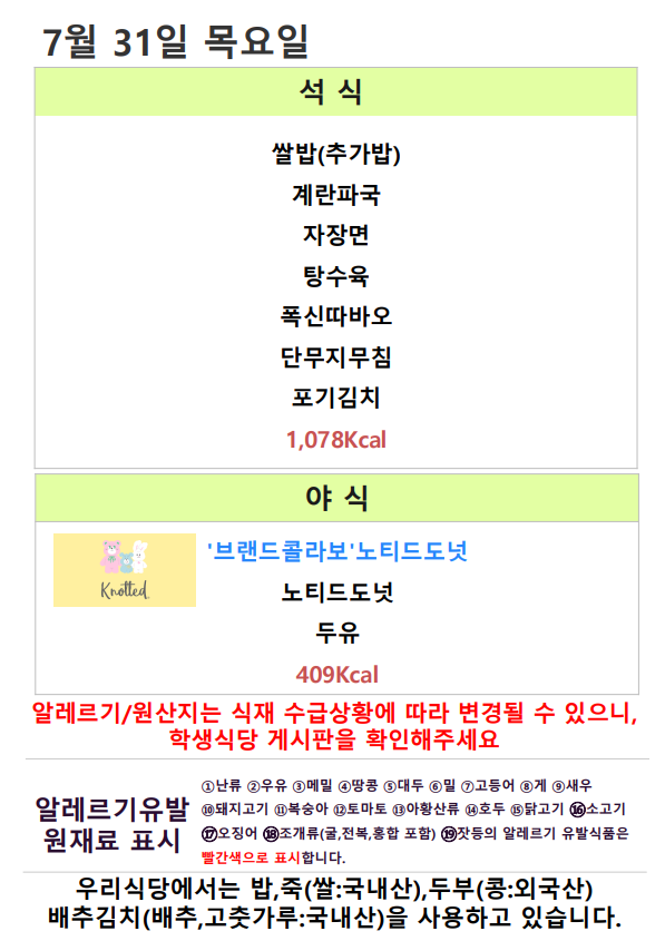 2025³â 8¿ù È®Á¤ ¸Þ´ºÀÔ´Ï´Ù.(ÆòÀÏ ¼®¾ß,ÁÖ¸»)